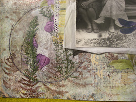 Страничка про мою маму и бабушку. Фото сделано на даче, где они отдыхали каждое лето, примерно 35 лет назад )) в основе скрап бумага, которая исчезла под слоем акрила, спреев, грунта и эмбоссинга )) еще использовала гербарий, вгрунтованные в бумагу (они почти исчезли в конце) и в виде маски (тоже уже не видно)) поэтому есть еще третий вариант - под пленкой. также применила папиросную бумагу, ткань, кружево и высечки.