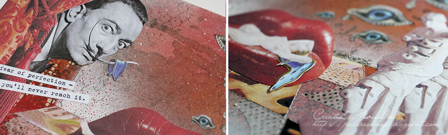 штампов, машинная строчка, вырезки – распечатки фрагментов картин Дали.